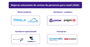 En 2026 hay varias soluciones de conteo de personas disponibles en Latinoamérica: FootfallCam, Porter, Followup y RetailCheck. Esta guía las compara para que puedas elegir la que mejor se adapta a tu negocio.