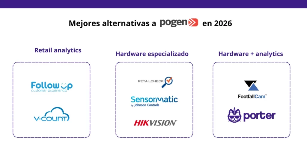 Existen varias soluciones de conteo de personas en el mercado, cada una con un enfoque distinto según el tipo de operación, el presupuesto y la región. Esta guía compara las principales alternativas a Pogen para que puedas evaluar cuál se adapta mejor a tu negocio, sin sesgos ni lenguaje de ventas.