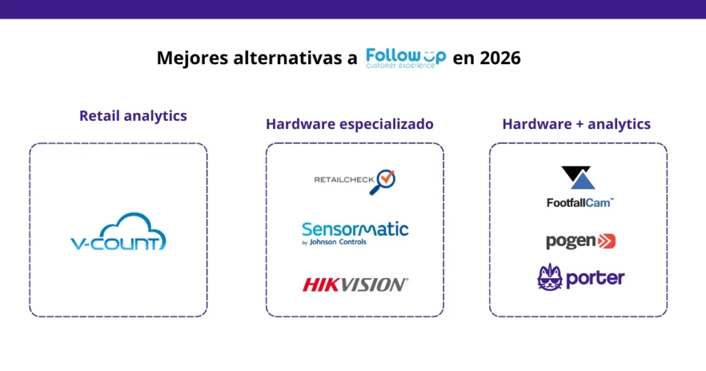 Existen varias soluciones de conteo de personas en el mercado, cada una con un enfoque distinto según el tipo de operación, el presupuesto y la región. Esta guía compara las principales alternativas a Follow Up Cx para que puedas evaluar cuál se adapta mejor a tu negocio, sin sesgos ni lenguaje de ventas.